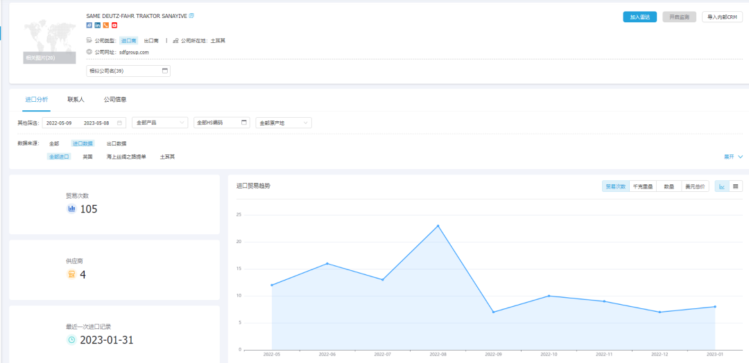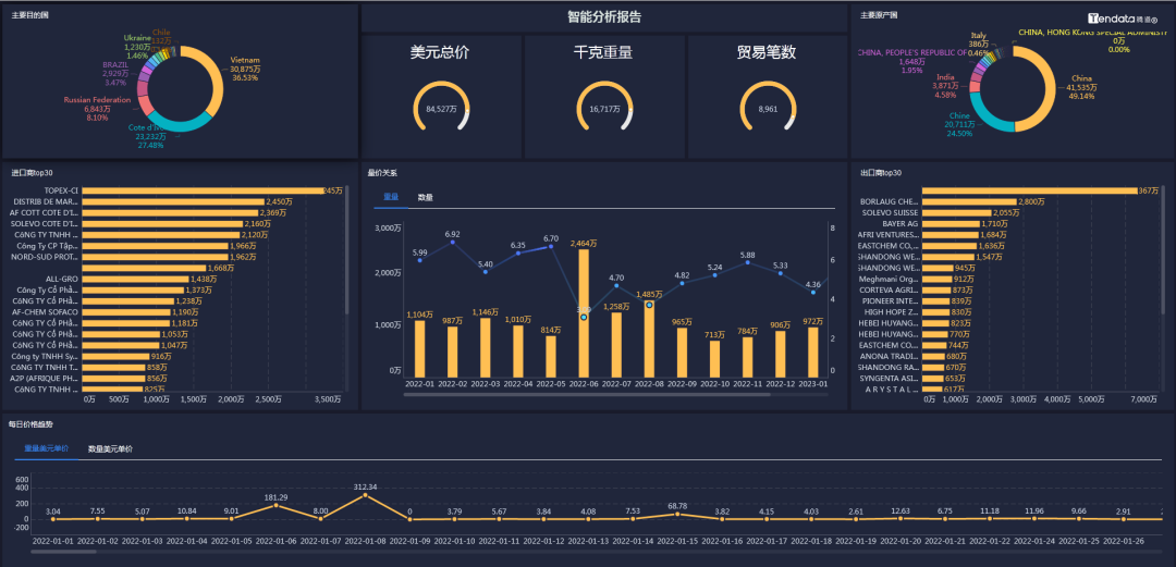NO钱包官网外贸通能够一键查询和追踪某类产品的全球交易详情,并体现整个供应链的采购供应,最大程度展示整个贸易网的情况,基于交易数据的统计分析,多维度分析行业、产品市场趋势,助力企业洞察市场变化、把握不同市场采购淡旺季,从而准确定位目标市场。