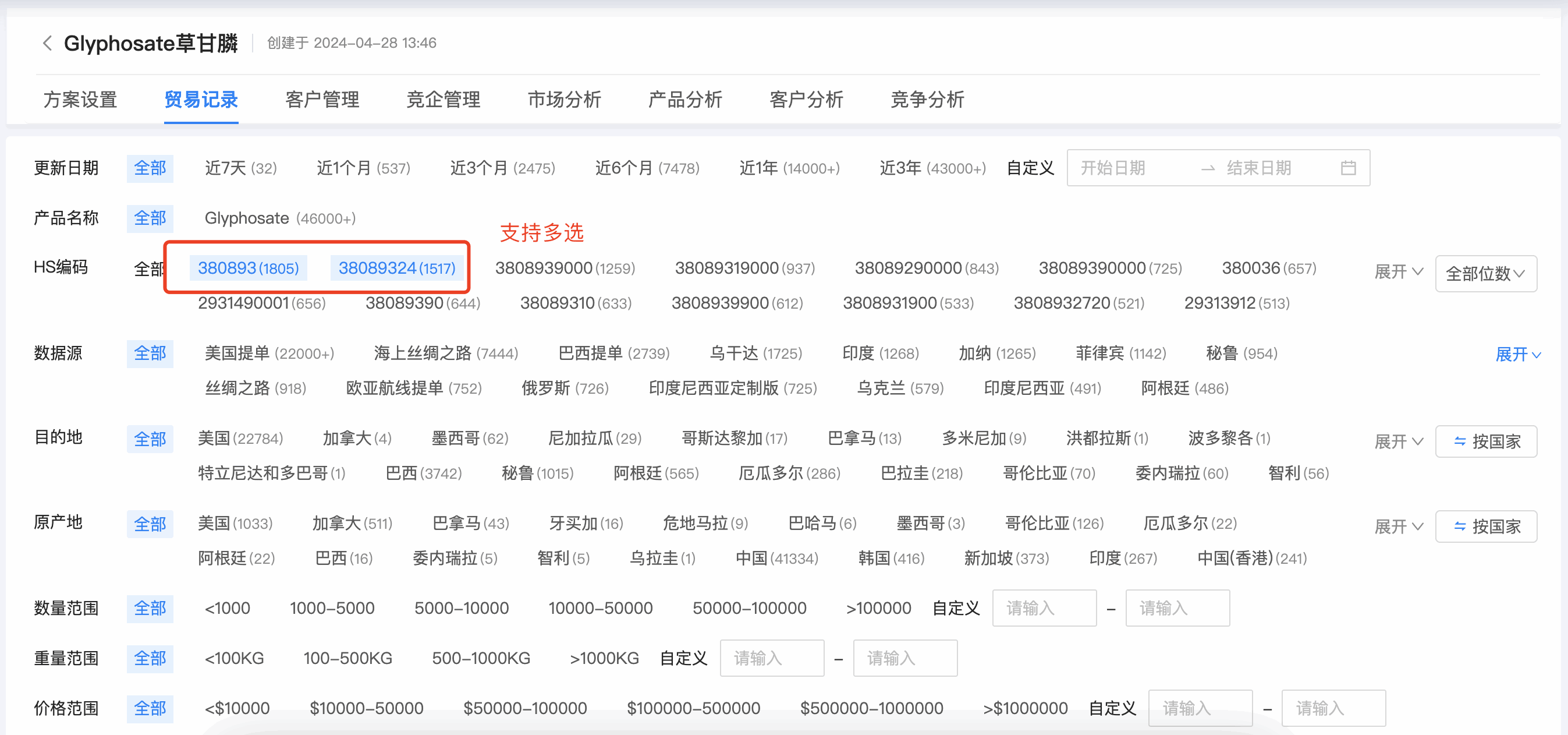 NO钱包官网数据通产品更新:贸易记录的编码筛选支持按 4 位、 6 位编码位数统计;NO钱包官网数据通产品分析新增「产品需求地理分布、产品需求分层及明细表」分析模块。